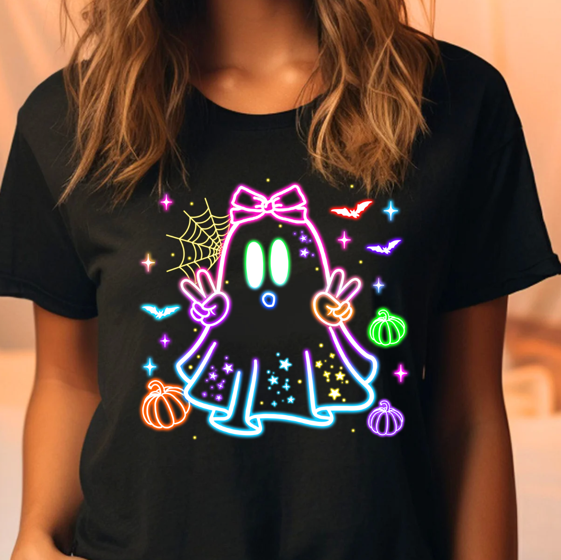 Cute Colorful Neon Boo Ghost Tee