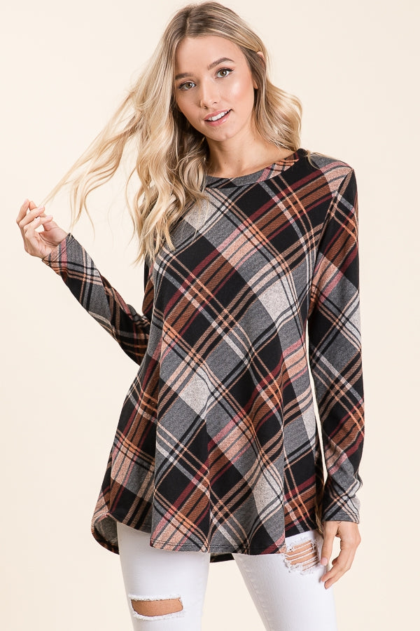 Plaid Long Sleeve Knit Top