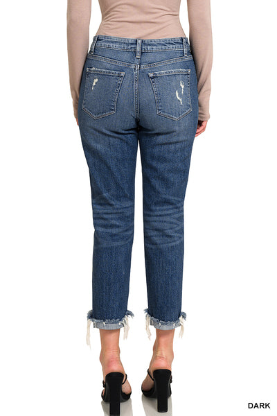 BOYFRIEND DENIM PANTS WITH FRAYED CUFF - FRAYED CUFF - BOYFRIEND FIT