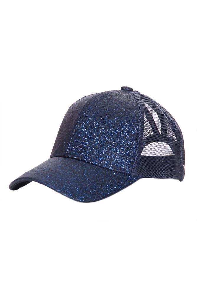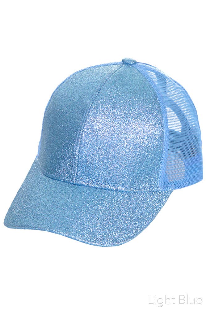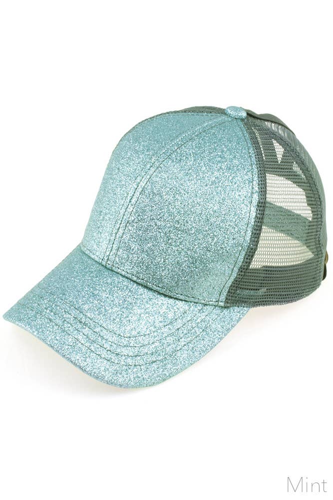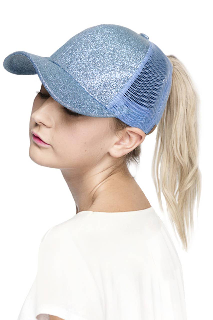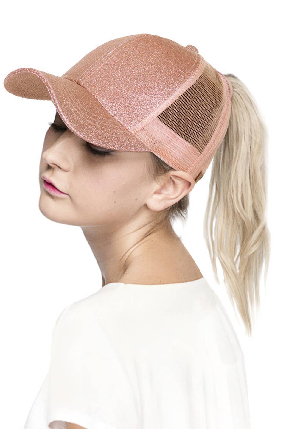 C.C Glitter Ponytail Mesh Back Baseball Cap