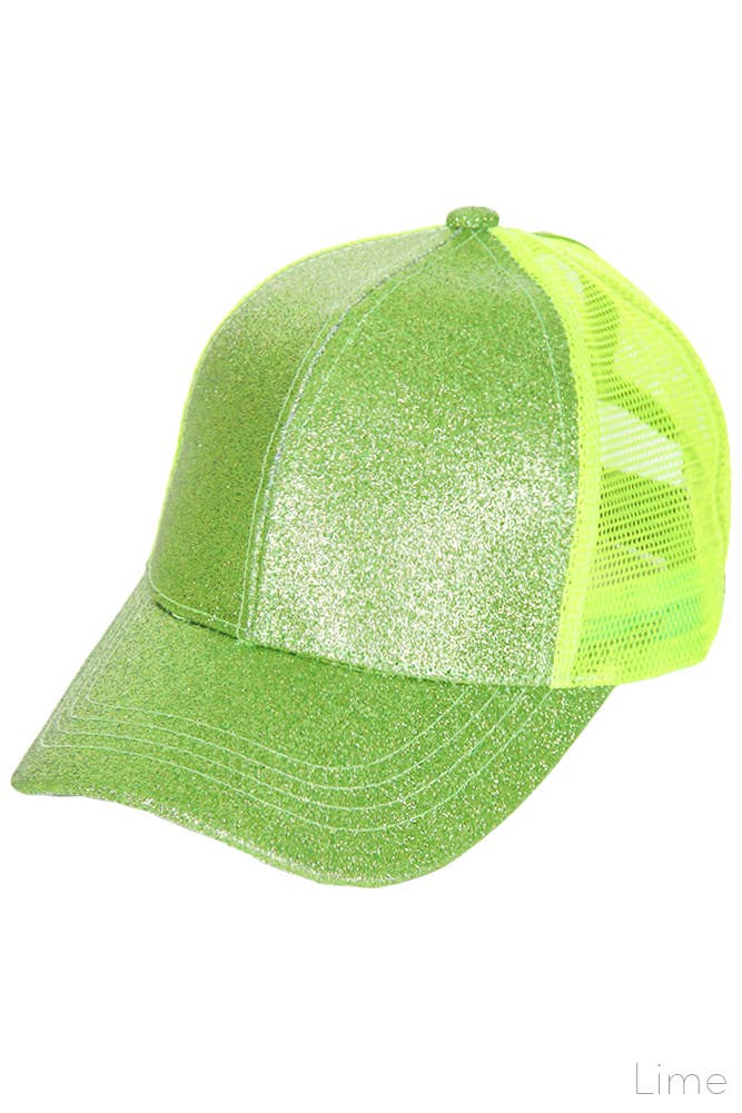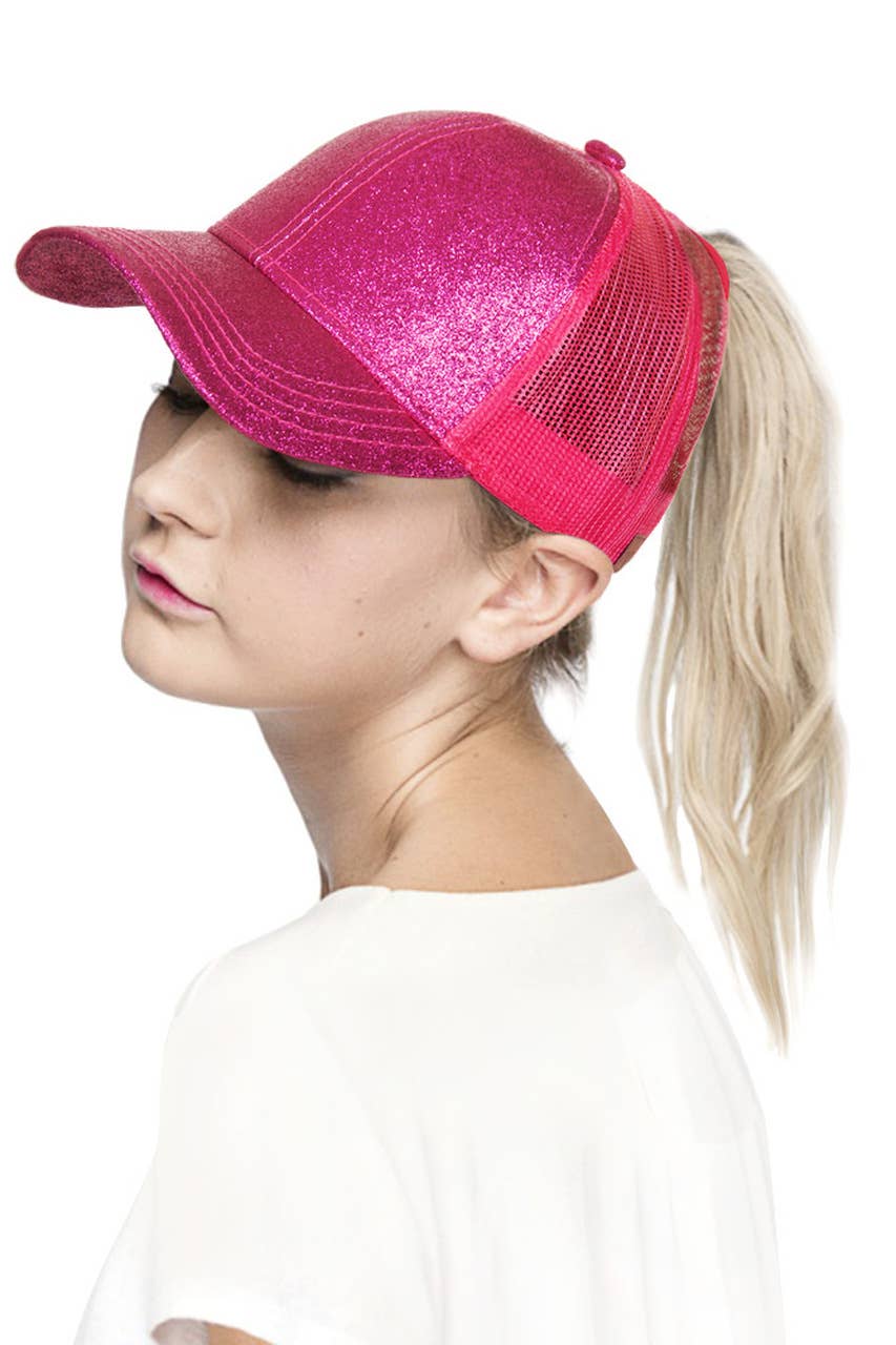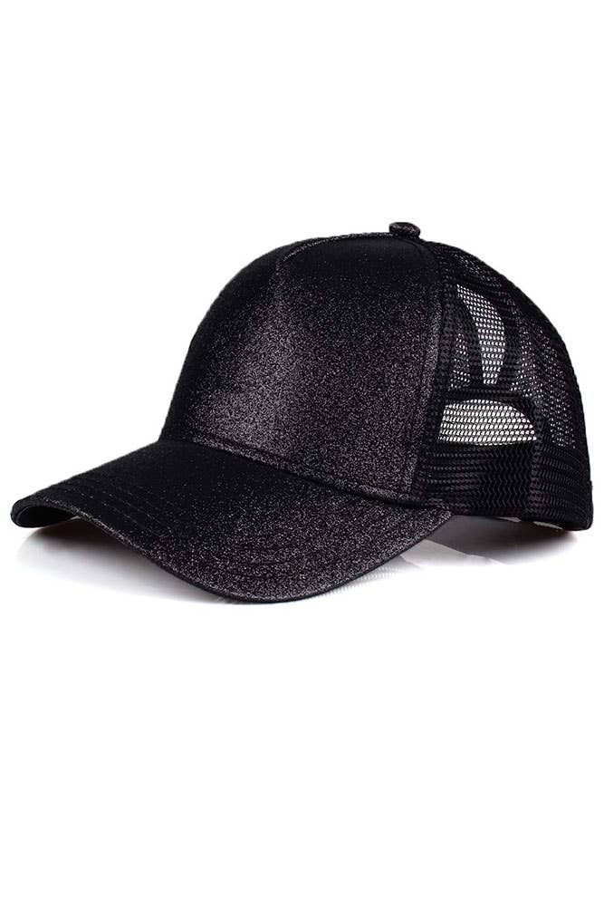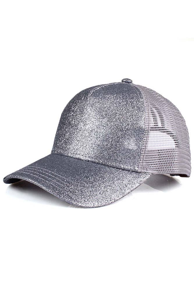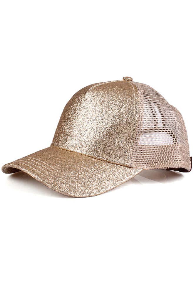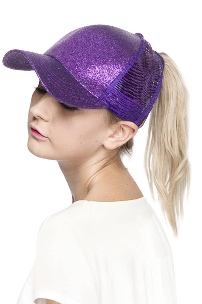 C.C Glitter Ponytail Mesh Back Baseball Cap