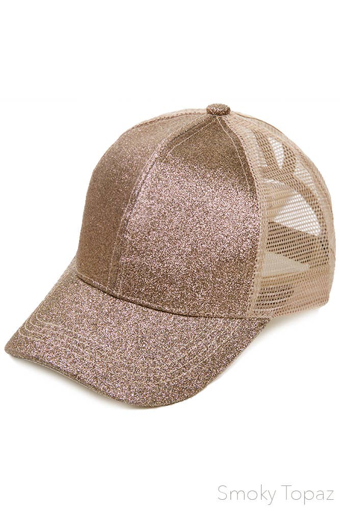 C.C Glitter Ponytail Mesh Back Baseball Cap